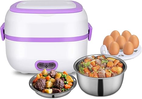 Amazon Com Electric Lunch Box 3 In 1 Food Heater Cooker Steamer With Stainless Steel Bowls Egg Steaming Tray Spoon Measuring Cup For Office School Home Travel Home Kitchen